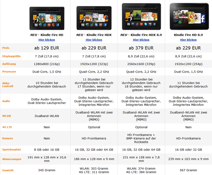 the end, it depends on the personal use which is most suitable tablet. Here is an overview of the technical data of the various tablets from Amazon: